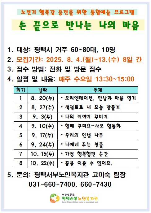 작성자 서부노인복지 작성일25-08-01 18:01 조회4,825회 댓글0건관련링크