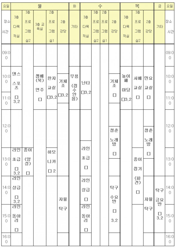 2013년도 2학기 사회교육 시간표
