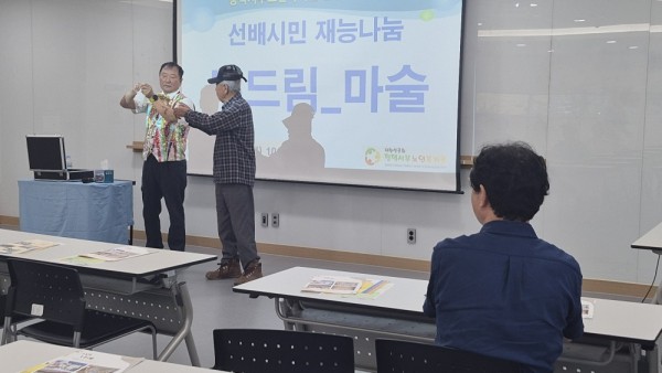 선배시민 두드림 봉사단의 마술 재능나눔 공연과 사업 안내를 진행하여