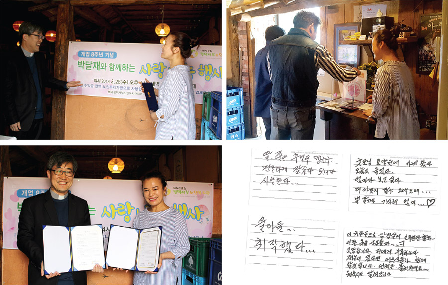 평택서부노인복지관과 업무협약을 맺고 출발하여 밤새도록 기쁜 마음으로 영업하여 얻은 수익금을 복지관에 전달하였습니다.